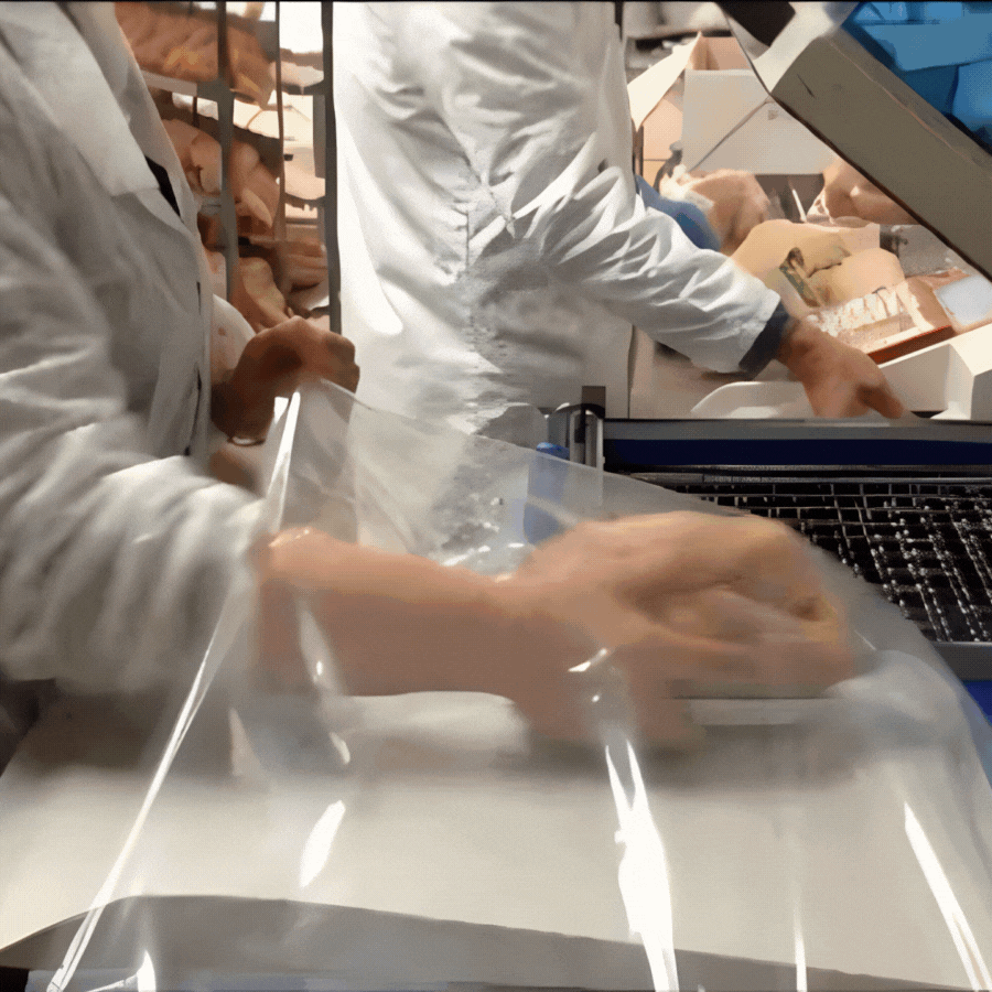 Simply place the poultry or any other product to be packaged (maximum product height: 20 cm) in the shrink film and then in the sealer. Close the magnetic frame using the handle. The sealer opens automatically when the selected cycle is complete. Your product is now packaged!